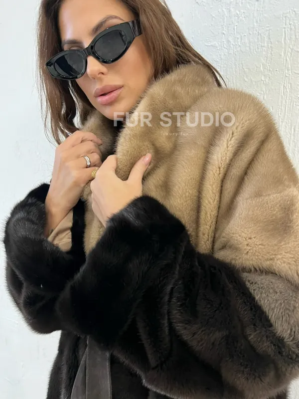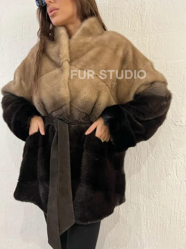 Короткая шуба из меха норки - эффект деграде 100389