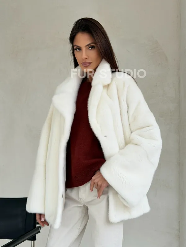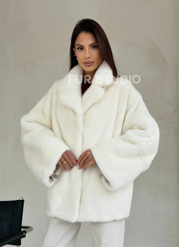 Шуба автоледи из белой норки NAFA MINK - роспуск 101004