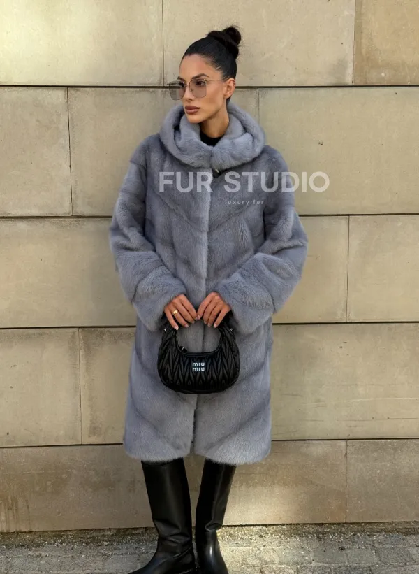 Шуба midi из меха норки с капюшоном, рукава трансформер 101059